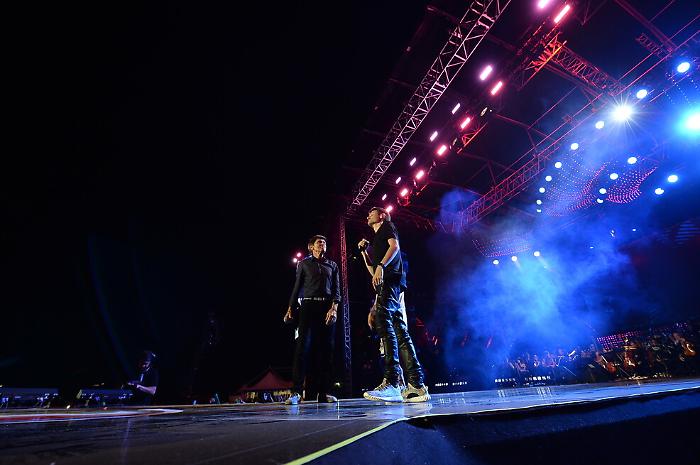 Quarantaduemila persone, quelle dichiarate dalle forze dell'ordine, contenute nel primo anello di ospitalità, più le migliaia accolte negli spazi liberi. Un'imponente scenografia, sotto l'aspetto visivo e tecnico. La sensazione di una festa in riva al mare, tra navi a spasso per il mediterraneo e lo scenario del golfo di Palermo. L'enfasi è stata tanta, con Luca e Paolo padroni di casa, coadiuvati da una Serena Rossi, mina vagante nel backstage. Icona della festa, Eros Ramazzotti con il suo fascino inalterato di portavoce mondiale del pop nostrano. A ruota Nek, altro rappresentante della canzone italiana che raccoglie fasti sui mercati latini.