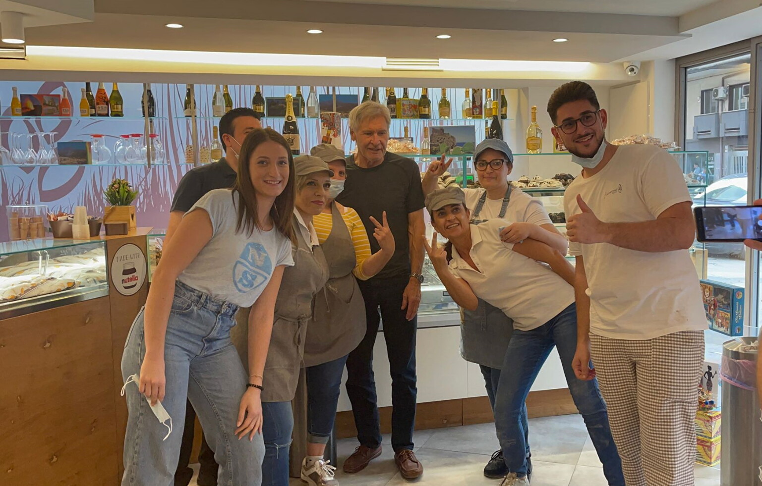 «Giovedì scorso verso l’una si sono fermate due auto scure e sono scesi Harrison Ford e una attrice (forse la coprotagonsita del film Phoebe Waller-Bridge, ndr) accompagnati dalle guardie del corpo - racconta il proprietario, Adriano Corsaro - Una commessa ha riconosciuto l’attore. Si sono seduti in un tavolino a pranzare con le guardie del corpo a tenere lontani i curiosi. Fuori intanto c’era il finimondo». «Ford è vegetariano - riprende Corsaro - Hanno mangiato pizza alla Norma, verdure grigliate, paste di mandorla e nostri dolci tipici, totò e rame di Napoli». Il divo? «Gentilissimo e alla mano, alla fine ha fatto una foto con lo staff. È molto atletico, ha 79 anni ma è uscito di corsa, in formissima. Ora tutti vogliono la pizza che ha mangiato Harrison Ford!».