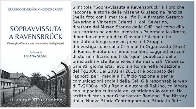«Dobbiamo essere grati al colonnello Gerardo Severino, già autore di altri preziosi studi in materia, per questa sua ultima ricerca storica, insieme al giornalista Vincenzo Grienti, su una vicenda di generosità ed eroismo a favore dei perseguitati durante l’occupazione nazista del Nord Italia nel 1943-45 che altrimenti sarebbe caduta nel più completo oblio» scrive nella prefazione la senatrice Liliana Segre.