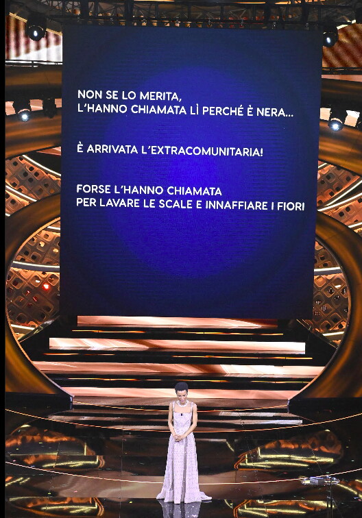 Poco prima c'era stato il monologo della co-conduttrice Lorena Cesarini, attrice di origini italo-senegalesi, protagonista nella serie televisiva italiana Suburra, in onda su Netflix.Non trattiene le lacrime parlando di razzismo sul palco del Teatro Ariston.