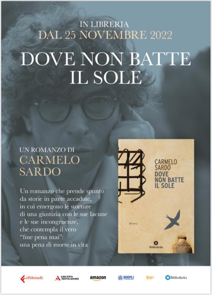 Esce il prossimo 25 novembre “Dove non batte il sole”, il nuovo romanzo di Carmelo Sardo, giornalista siciliano e caporedattore del Tg5, tra gli autori italiani più acuti del fenomeno mafioso. La nuova opera, disponibile in tutte le migliori librerie e su qualsiasi store online, verrà presentata alla Nuvola di Roma per la Fiera della Piccola e Media Editoria “Più Libri Più Liberi 2022”, sabato 10 dicembre ore 15,30, con la partecipazione del Procuratore di Marsala, Roberto Piscitello e dello scrittore Gaetano Savatteri. Il libro, pubblicato dalla casa editrice romana “Bibliotheka Edizioni” (pag. 250 – 18 euro), narra una storia dal forte impatto emotivo in cui emergono le storture di una giustizia con le sue lacune e le sue incongruenze.