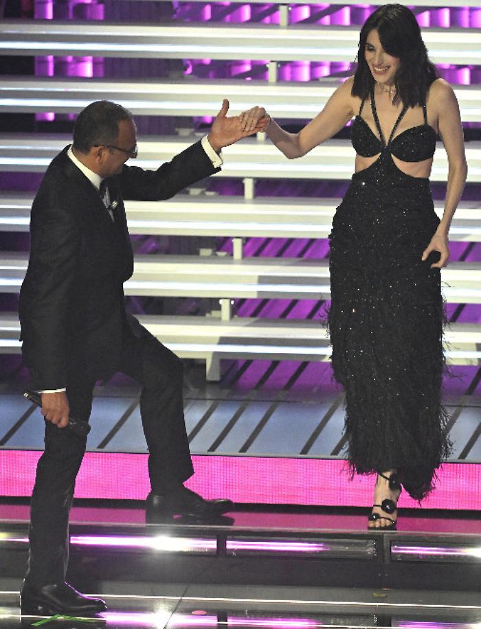 Entrambi eleganti le due conduttrici che stanno affiacando Carlo Conti nella seconda serata del Festival
