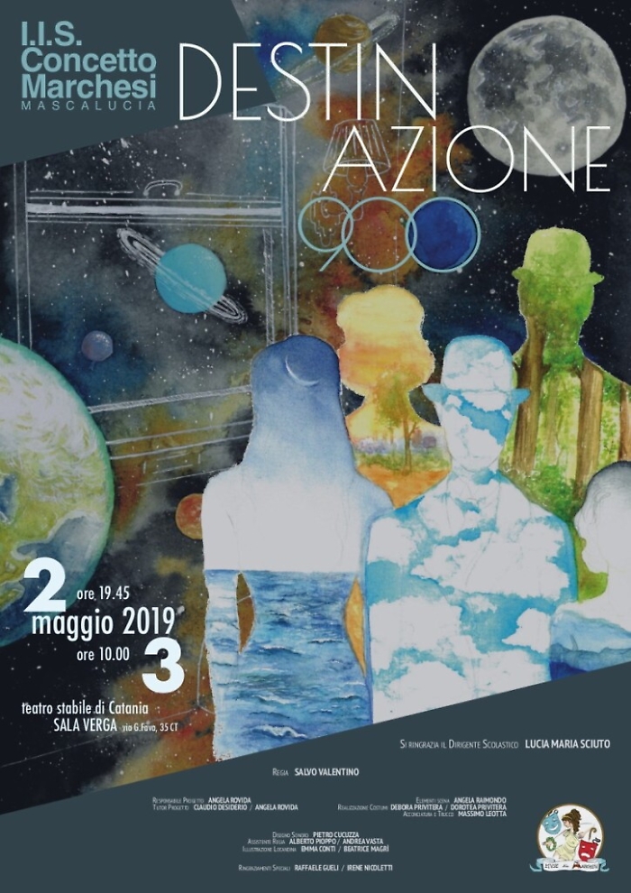 La Prof. Lucia Maria Sciuto dirigente scolastico del Concetto Marchesi ha formente voluto che si portasse avanti questo progetto che si è avvalso della collaborazione di Raffaele Gueli, Irene Nicoletti, Emma Conti e Beatrice Magri. Gli elementi di scena sono stati curati da Angela Raimondo, i costumi da Debora Privitera e Dorotea Privitera, assistenti alla regia Alberto Pioppo e Andrea Vasta. Questo il nutrito cast:Tamara Barbaro, Simone Biondi, Ilenia Blancato, Alice Cardella, Benedetta Càssaro, Lorenzo Càssaro, Giulia Castorina, Emma Conti, Giorgia De Marco, Lorenzo Desiderio, Mirko Di Paola, Beatrice Di Salvo, Ludovica Faro, Gaia Fichera, Rossella Finocchiaro, Martina Giuffrida, Livia Lazzàra, Beatrice Nizzari, Agnese Papotto, Giuseppe Petralia, Felice Pidatella, Elena Riviera, Sofia Riviera, Fabiola Zappalà, Simone Biondi, Federico Caruso, Federico Catalano, Micaela Catania, Martina Cirinà, Federica Di Paola, Agnese Fichera, Martina Greco, Chiara Li Greci, Giorgia Lombardo, Beatrice Magrì, Giuliana Mondera, Cristina Munafò, Giada Palumbo, Letizia Rapisarda, Sarah Riela, Giovanni Scalia, Giuseppe Testa, Amanda Toscano, Andrea Vasta, Aurora Vighetto, Pierre Vighetto, Giorgio Zagami.