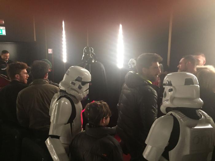 I figuranti ufficiali hanno sorpreso gli spettatori entrando nelle sale cinematografiche durante l’intervallo. Selfie con tutti i fan della saga creata da George Lucas ed iniziata nel 1977. Tanti i fan che già da diversi mesi avevano prenotato i biglietti per la prima rappresentazione nazionale. I figuranti ufficiali, domenica prossima dalle ore 17.30 ritorneranno ad incontrare i fan catanesi all’Uci Cinemas.