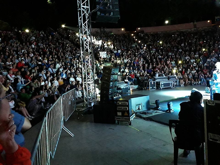 Ben presto col sopraggiungere della sera è giunto altro pubblico di tutte le fasce d’età e pian piano l’Anfiteatro si è riempito. Calorosi applausi hanno prima chiamato e poi accolto Lorenzo che col suo sorriso e la sua voce emozionata per questo grande affetto manifestatogli dal pubblico ha detto che «per lui venire a Zafferana è stato motivo di grande gioia , perché ne conosceva i colori, i sapori, dal momento che da piccolo si recava a villeggiare proprio in questa cittadina alle falde dell’Etna».