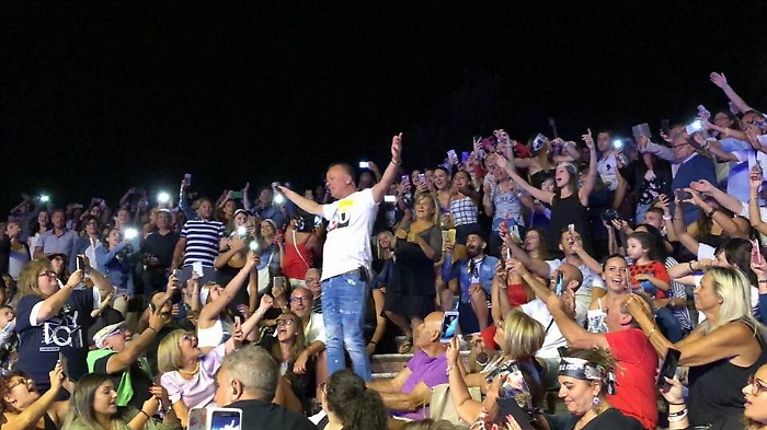 Gigi D’Alessio ha mandato in tilt l’anfiteatro Falcone e Borsellino di Zafferana, nell’ambito della kermesse “Etna in scena”. Il cantautore partenopeo nella prima delle tre tappe del suo tour siciliano (il 9 agosto a Capo d’Orlando e il 10 a Palermo) come prevedibile ha dato vita ad uno dei concerti piu belli, appassionati e sentiti come solo lui sa fare con la sua capacità di interagire col pubblico di tutte le età che ha affollato gli spalti e che si sono riempiti sempre di più.