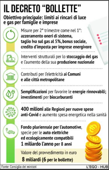E’ un nuovo maxidecreto quello che il governo vara per arginare gli aumenti delle bollette, per correre in soccorso degli enti locali, per sostenere il settore auto, ma anche per elaborare una strategia energetica di più lungo termine, basata sul potenziamento delle rinnovabili da un lato e sull'aumento della produzione di gas nazionale dall’altro.