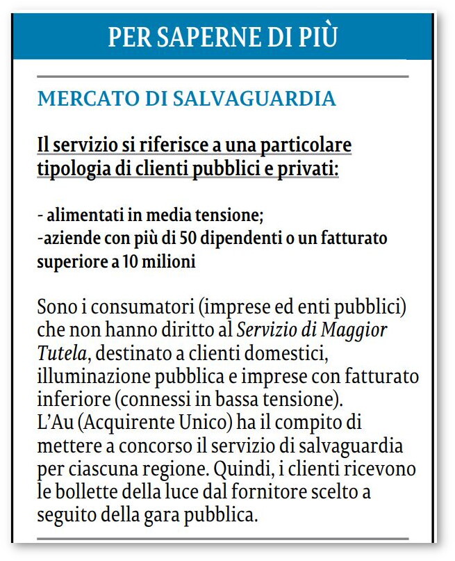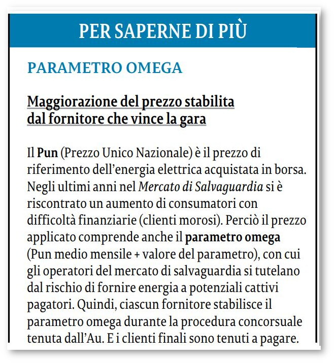 E dire che la radice del problema ha il nome che sa di beffa: “mercato di Salvaguardia”. Un limbo, a dire il vero molto esteso, in cui convive questa categoria di grandi consumatori di energia. Dentro il quale finiscono tutti i clienti pubblici e privati che non riescono a onorare gli impegni economici con il fornitore energetico nel cosiddetto mercato libero. E così, in questo regime, c’è un’Authority - il cosiddetto Acquirente Unico - che mette a gara il servizio biennale di salvaguardia in ogni singola regione d’Italia. I gestori che si aggiudicano l’appalto hanno diritto a una tariffa che, oltre al Pun (Prezzo unico nazionale), ieri fissato in Borsa a 382,67 euro a MWh, un sovraccosto che varia da regione a regione. Si chiama “parametro Omega” e serve a tutelare gli operatori del mercato dal rischio di fornire l’energia a potenziali cattivi pagatori. Ovviamente l’oscillazione di questa variabile, diversa da regione a regione, dipende dalla stima sull’affidabilità dei clienti pubblici e privati. Il risultato della gara dello scorso 25 novembre è un’Italia a macchia di leopardo.