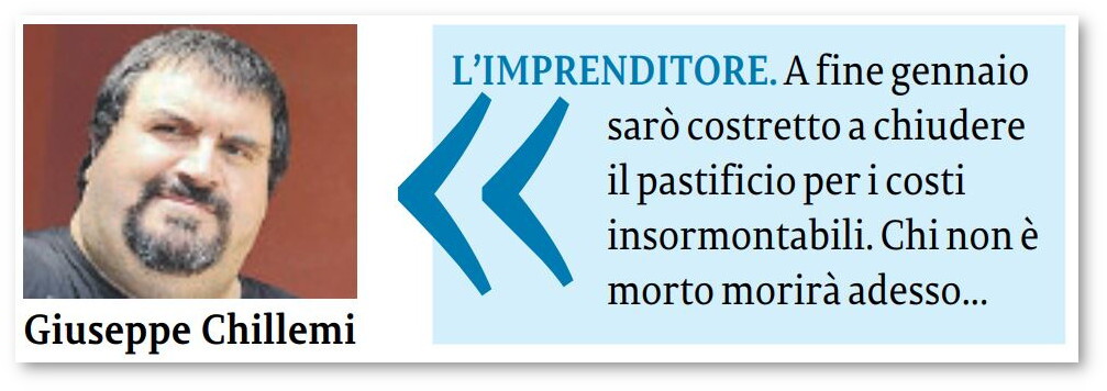 «Avevamo creato, a Belpasso, uno stabilimento per esportare nel mondo la nostra pasta ripiena realizzata con ingredienti siciliani accuratamente selezionati. Ma a fine gennaio, a meno di colpi di scena chiuderemo. Perché dall’inizio del prossimo anno per noi il costo dell’energia aumenterà del mille per cento. Chi non è già morto, morirà adesso...». Giuseppe Chillemi non è uno delle migliaia di imprenditori messi in ginocchio dal caro-bollette che coinvolge tutto il Paese, da Bolzano a Portopalo. Il titolare del pastificio etneo “Raviol d’Oro” è in una sottocategoria ancora più sfortunata: quella delle istituzioni (oltre 200 Comuni, più aziende municipalizzate ed enti pubblici vari) e delle imprese (con più di 50 dipendenti e un fatturato annuo superiore a 10 milioni) che vengono alimentate, per le ovvie necessità di energia, dalla rete in media tensione.