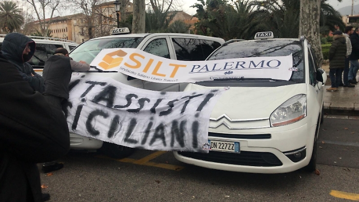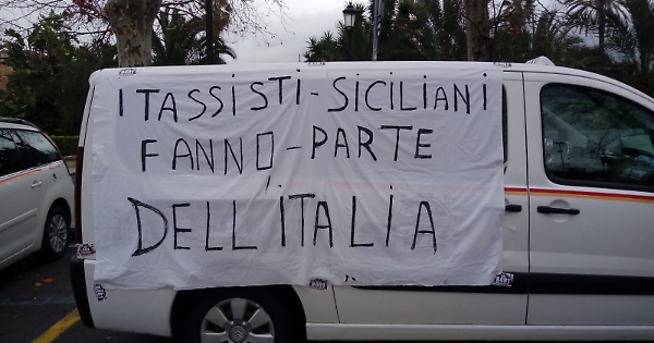 “I tassisti siciliani fanno parte dell'Italia”: è uno striscione emblematico in bella mostra su uno dei tanti taxi accorsi oggi a Palermo, con delegazioni anche da Catania e Messina, a dare il senso delle ragioni dei sit in promossi da Silt, Sindacato italiano libero trasporti, sit in che si stanno tenendo contestualmente anche sotto altre Prefetture siciliane, Agrigento, Trapani e Siracusa.