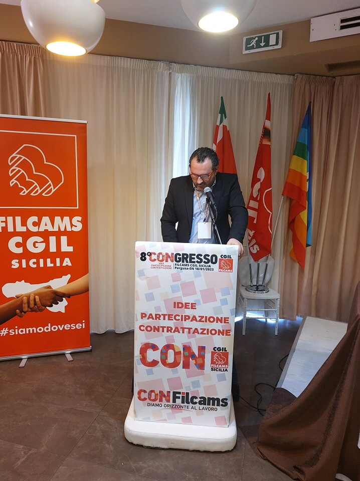 <Oggi con questa assise congressuale – ha fatto il suo esordio Sandro Pagaria, impegnato anche nello sport: presidente della Federpallamano Sicilia - termina la fase dei congressi che hanno visto le Filcams protagoniste in tutte le nove provincie della Sicilia e con la celebrazione di questo 8° Congresso la Filcams-Cgil Sicilia si conferma la Categoria, delle Lavoratrici e dei Lavoratori attivi, fra le più importanti della Cgil a tutti i livelli. Avremo modo di portare istanze, riflessioni e contributi nell’ambito del Congresso nazionale della Filcams Cgil che sarà celebrato dal 14 al 16 febbraio prossimo a Rimini che poi culminerà con il 19° Congresso della Cgil del 15, 16, 17 e 18 marzo sempre a Rimini. Anche in Sicilia, il settore del commercio, del turismo e del terziario si conferma il settore trainante; la nostra è stata ed è una Categoria “generosa” lo abbiamo dimostrato in ogni occasione e soprattutto anche durante la pandemia, quando attraverso il nostro perseverante lavoro, in ogni ambito del Paese e della società, abbiamo assicurato la fruibilità di beni e servizi>.