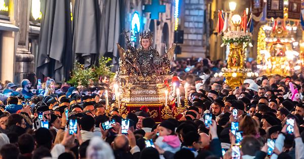 Ottava di Sant'Agata, Catania ancora in festa: le foto dei fedeli in piazza Duomo per il tradizionale giro della “varetta”