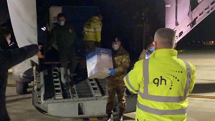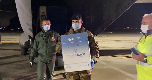 L'arrivo delle prima 865 dosi di vaccino in Sicilia.
