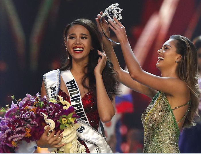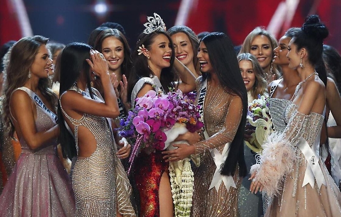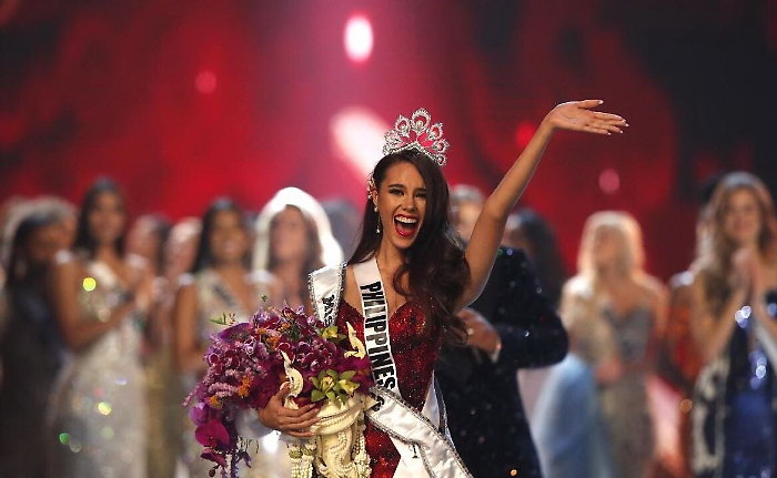 BANGKOK - Catriona Gray, 24 anni, miss Filippine, è stata eletta Miss Universo a Bangkok, battendo le concorrenti di altri 93 paesi. Gray, che indossava un vestito rosso a suo dire ispirato da un vulcano del suo Paese, ha detto di aver scelto quel colore «perché quando avevo 13 anni mia madre sognò che diventavo Miss Universo e che portavo un vestito rosso». Gray è stata eletta da una giuria di sole donne, per la prima volta nella storia del concorso.