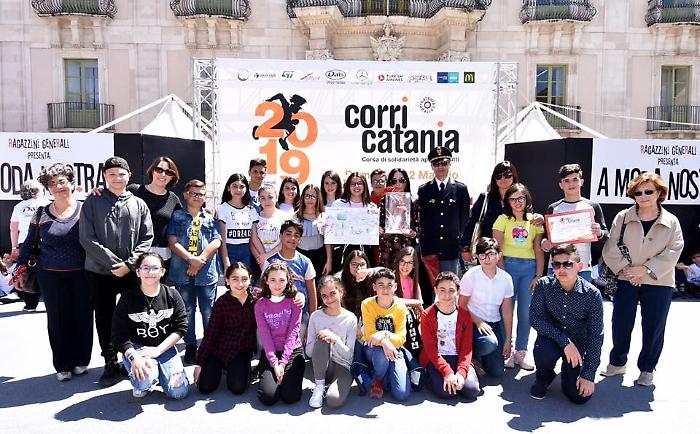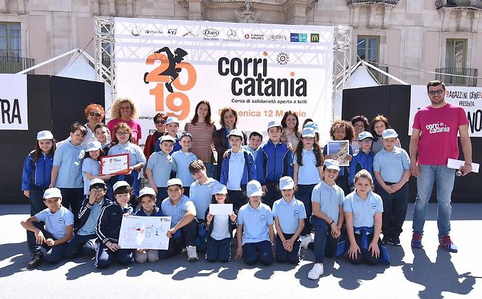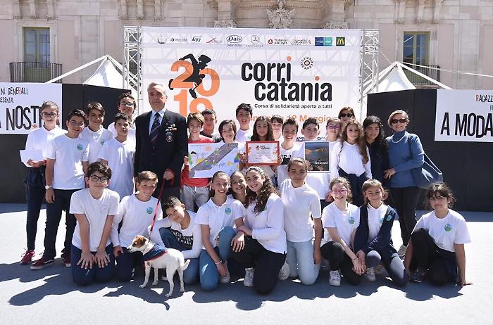 OGGI CHE FESTA AL CORRI CATANIA VILLAGE. Oggi il jingle di Corri Catania, cantato dall'artista Giusi Lanzanò, ha dato il via alla seconda giornata del Corri Catania Village, allestito in piazza Università. La premiazione del concorso di disegno e creatività "Colori e Parole", al quale hanno aderito oltre 120 classi di scuole di Catania e provincia, ha aperto la giornata all'insegna della gioia e dell'emozione. In un clima di festa, con tanti alunni e alunne ad animare la platea, per la primaria il primo posto è andato alla classe III A del Cd "De Amicis"; menzioni speciali sono state assegnate alle classi V E del Cd "Rapisardi" e alla III A del Cd "Fava" di Mascalucia. Per la secondaria di primo grado, vittoria alla classe II A dell'Ic "Deledda" e menzioni speciali sono state assegnate alla III C dell'Ic "Vespucci" e alla I D dell' Ic De Amicis di Tremestieri Etneo. A premiare alunni e alunne sono intervenuti il vice questore di Catania dott. Giacomo Palma; il Maggiore Ezio Raciti del 62° Raggimento Fanteria Sicilia; l'ex olimpionica di ginnastica artistica Maria Cocuzza e i rappresentanti dell'Associazione Nazionale Carabinieri. Applauditissimo l'intervento del mago Dimis che ha incantato la platea con il suo spettacolo di illusionismo e la sua simpatia.