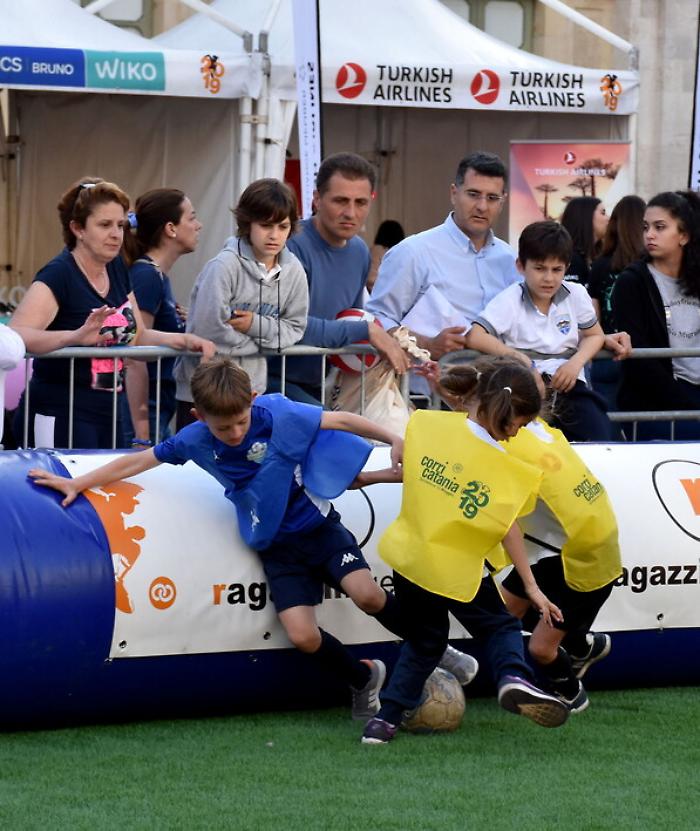 STREET SOCCER CUP: ECCO I VINCITORI. Il torneo che nei mesi di marzo e aprile ha coinvolto centinaia di bambini e ragazzi, evento collaterale della corsa-camminata anche quest'anno ha riscosso un grande successo. Sul campo allestito in piazza Università hanno trionfato per la categoria 2007/2008 i Leoncini di Biancavilla che hanno battuto in finale le Victorine e al 3º posto Italia che ha superato i Benfica del San Luigi Acireale Acireale che si sono aggiudicati la coppa «fair play», mentre il trofeo dei cannonieri è andato a Loris Carbonaro (Leoncini) con 21 reti. Per la categoria 2009/2010 lo Junior Belpasso ha avuto la meglio in finale su gli Insuperabili del San Luigi Acireale e al 3º posto i Cirini che hanno battuti i Fulmini. Bomber con 28 reti Elia Vitale (Junior Belpasso).
