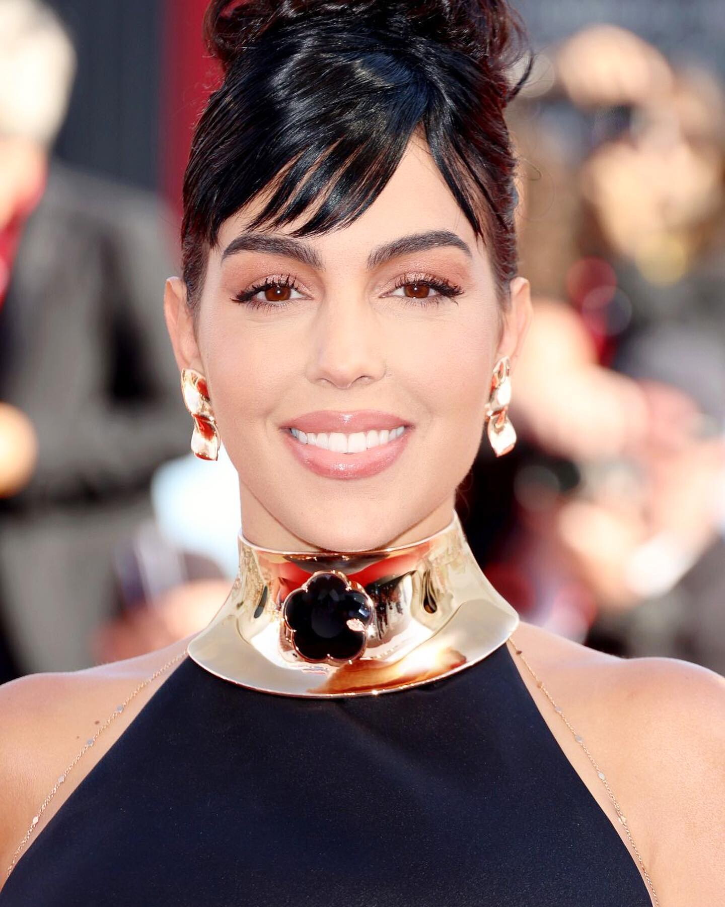 Per il suo quarto red carpet alla Mostra del Cinema di Venezia, Georgina Rodrìguez non ha mancato di presentarsi con la sua sensualità esplosiva. La compagna di Ronaldo, mamma per la seconda volta da poco meno di un anno, è apparsa bellissima come sempre fasciata in un abito nero che le lasciava scoperte spalle e schiena e con un spacco laterale "generoso". Pare che soprattutto per l'acconciatura, oltre che per il vestito, la Rodrìguez si sia voluta ispirare ad Audrey Hepburn, nonostante il fisico dell'attrice fosse molto diverso dal suo.