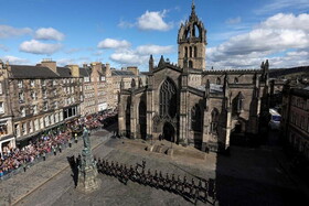 Già oltre un’ora prima che arrivi il corteo tutti gli accessi al 'Miglio realè sono bloccati, non si può più entrare o uscire. Ci sono intere famiglie, scolaresche, molti venuti da fuori città, tanti turisti stranieri. In una caratteristica stradina adiacente, Steve Wright ha un negozio di souvenir: "Nato e cresciuto qui a Edimburgo - si presenta -. Oggi è una giornata incredibile, c'è anche il sole. E’ triste che la regina sia morta. Ma questo è anche l’ultimo regalo che Elisabetta II fa a Edimburgo e agli scozzesi: tutto il mondo ci guarda, guarda la nostra città, che è bella e accogliente. E magari il prossimo anno verranno a visitarla». Intanto il corteo è partito da Holyroodhouse: dietro la bara, disposta a vista sul carro funebre, al suono della cornamusa del Royal Regiment of Scotland seguono a piedi re Carlo III, la principessa reale Anna e i principi Andrea ed Edoardo. Attorno, un fiume di gente. Ancora silenzio e commozione, rotti solo da qualche "God bless the Queen". Poi la cerimonia privata prima che le porte si aprano - oltre un’ora in ritardo rispetto al previsto - e la sovrana venga restituita ai suoi sudditi.