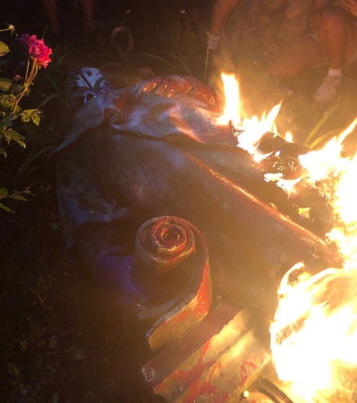 Una statua di Cristoforo Colombo è stata demolita e gettata in un lago a Richmond in Virignia la scorsa notte. La scultura è stata demolita meno di due ore dopo che i manifestanti nella capitale della Virginia si erano radunati nel Byrd Park. I manifestanti hanno abbattuto il monumento con le corde, lo hanno dato alle fiamme e lo hanno fatto rotolare in un lago. Il piedistallo vuoto è stato imbrattato e coperto da un cartello che dice "Colombo rappresenta il genocidio".