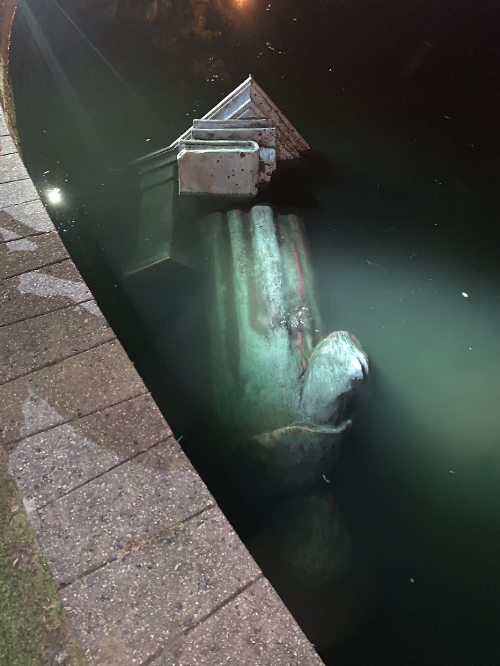 In Virginia la statua di Cristoforo Colombo distrutta e gettata nel lago