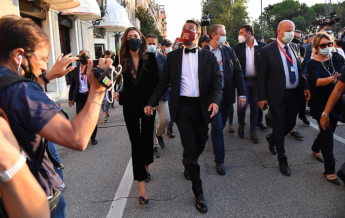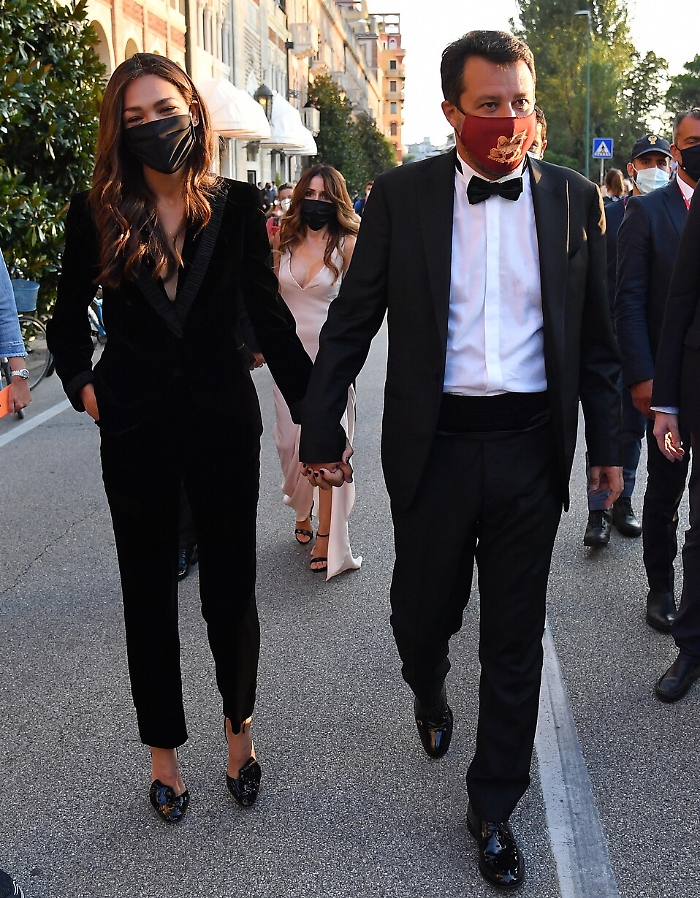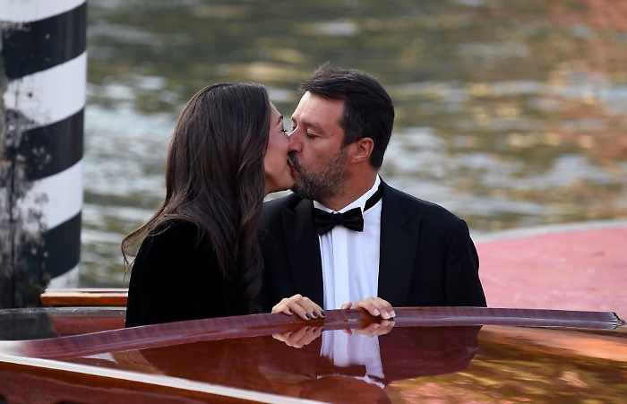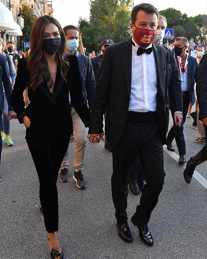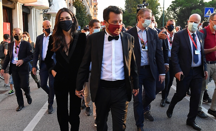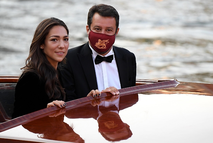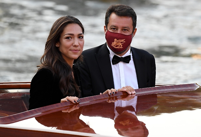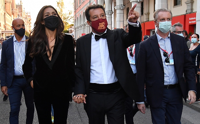 Tra una serata a teatro e una al cinema, «preferirei la prima, l’ultima volta che ho visto un film è la Sirenetta di Disney con mia figlia, ma faccio contenta Francesca». Dopo la premessa «non sono qui per parlare di politica», Salvini parla di Berlusconi ammalato, «gli ho fatto i miei auguri, come pure al candidato Pd in Veneto - Arturo Lorenzoni, ndr - spero possano rimettersi, con la salute non si scherza». Poi aggiunge: "In Veneto tutti i militanti della Lega sono anche per Zaia, chi vota Zaia vota anche Lega, insieme siamo oltre il 60%, non c'è nessun problema con il presidente del Veneto, avercele sicurezze così in tutta Italia. Piuttosto si preoccupi il centro sinistra: tra Pd e 5 stelle saranno al 20%, forse qualche problemino lo avranno loro». Con i cronisti basta, la coppia mano nella mano, mascherine sul viso, si avvia ad uscire dall’hotel per fare i 200 metri che separano l’Excelsior dal red carpet del Palazzo del cinema: la folla è tanta, una voce isolata urla 'vai a casà, ci sono anche gli applausi, la richiesta di selfie e di autografi è accontentata. Sul tappeto rosso ci scappa anche un bacio sulle labbra, i flash si sprecano, poi l’ingresso in platea, mescolati tra il pubblico comune.