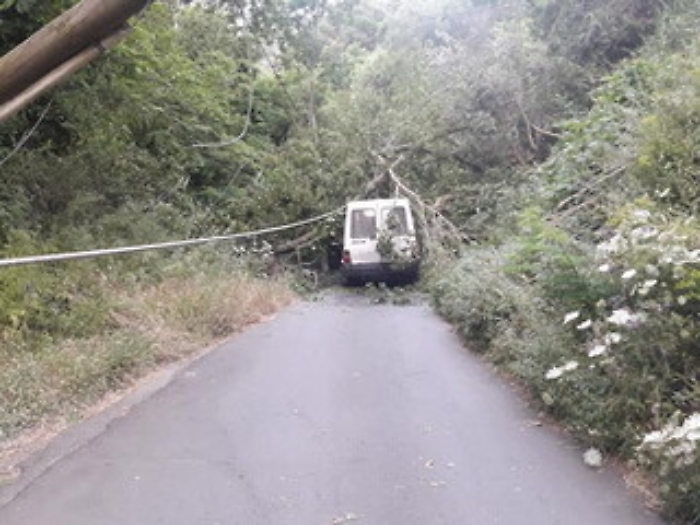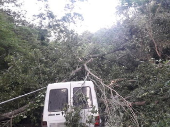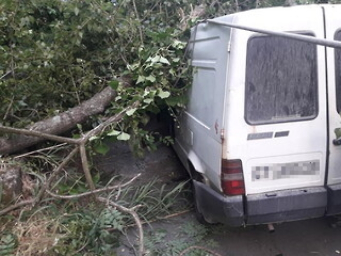 Fiumedinisi (Messina) - Ha visto la morte in faccia il conducente di un furgoncino che questa notte a Fiumedinisi, piccolo centro dei Monti Peloritani che confina con Messina, stava percorrendo la strada provinciale agricola che conduce in contrada Santissima. Intorno alle 4 il suo mezzo, un Fiat Fiorino, è stato colpito in pieno da un grosso albero di pioppo crollato improvvisamente sulla sede stradale. L'esemplare sorgeva sul margine della strada e ha ceduto spezzandosi per l'eccessivo peso (non si sono verificate raffiche di vento) finendo sulla parte anteriore dei veicolo, piegando la cabina e colpendo il parabrezza che è andato interamente in frantumi.