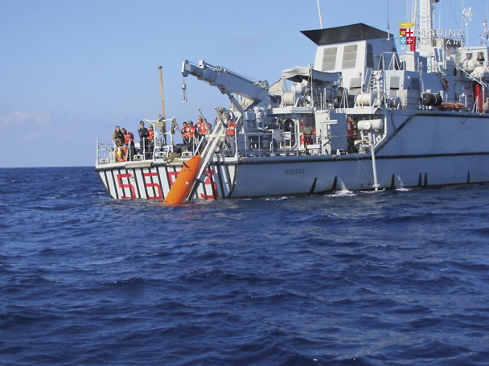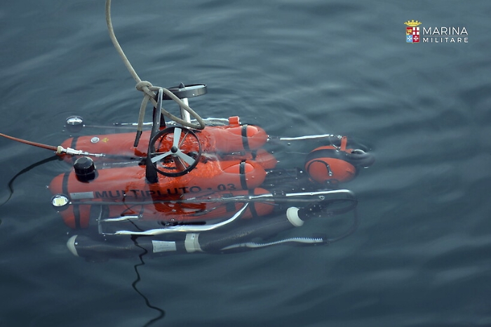 Stromboli (Messina) - Il cacciamine Vieste della Marina Militare, durante un'attività di verifica tecnica e sorveglianza dei fondali nel Mar Tirreno presso l'isola di Stromboli, ha ritrovato il relitto dell’Incrociatore Leggero Giovanni Delle Bande Nere affondato nel 1942.