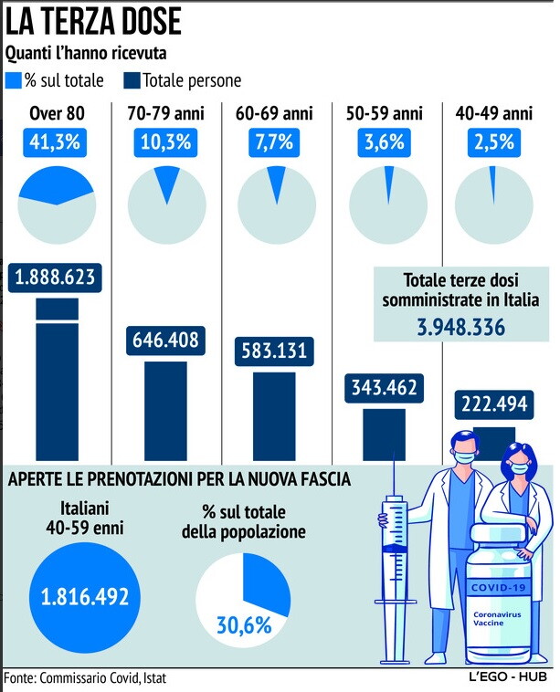 decisione sulla terza dose obbligatoria per le categorie per cui è già previsto l’obbligo, come i sanitari. Gli anestesisti: «Le terapie intensive rischiano di intasarsi in un mese».