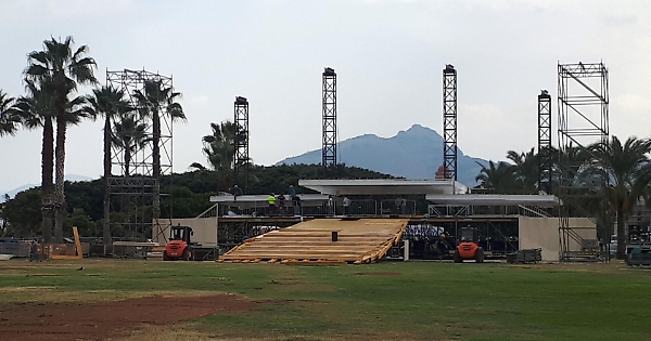 Visita Papa a Palermo, palco in fase di montaggio al Foro Italico
