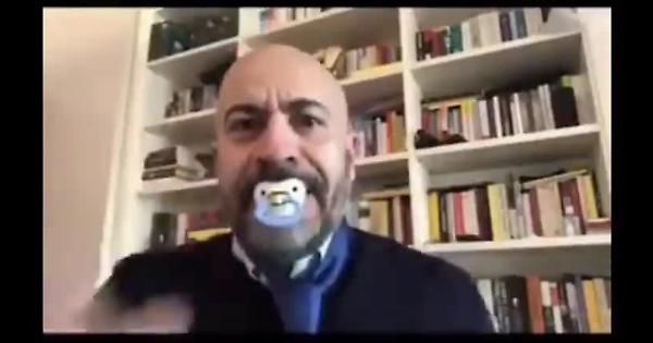M5s, Gianluigi Paragone col ciuccio per sfottere Di Maio