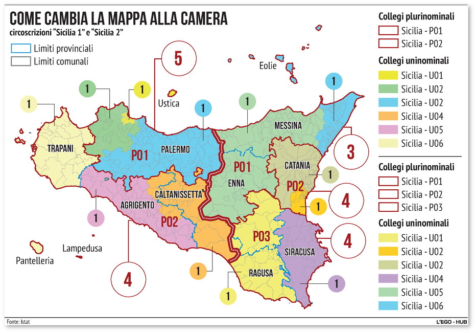 I posti ci sono, ma non abbastanza. Forza Italia, in base all’intesa nazionale, può contare su 5 uninominali: 4 alla Camera (“Palermo (Settecannoli)-Ustica”, “Marsala”, “Barcellona Pozzo di Gotto” e “Messina”) e quello di “Gela” al Senato. Ai quali bisogna aggiungere una forbice fra 5 e 7 plurinominali, legata ai risultati del partito nella quota proporzionale. Per questo Miccichè, riprotette le uscenti e piazzato se stesso, deve difendere il suo “foglietto” dal pennarello in favore dei paracadutati da Roma. S’è parlato di «due nomi in quota Licia Ronzulli», ma alla fine la questione potrebbe risolversi con il ritorno a casa, da candidato, del sottosegretario Giorgio Mulè, di origini nissene con frequentazioni mazaresi e palermitane prima di diventare un giornalista di caratura nazionale. Smentite, almeno finora, le voci sull’ospitalità a un candidato dell’Udc l’assessore regionale Mimmo Turano nell’uninominale trapanese.
