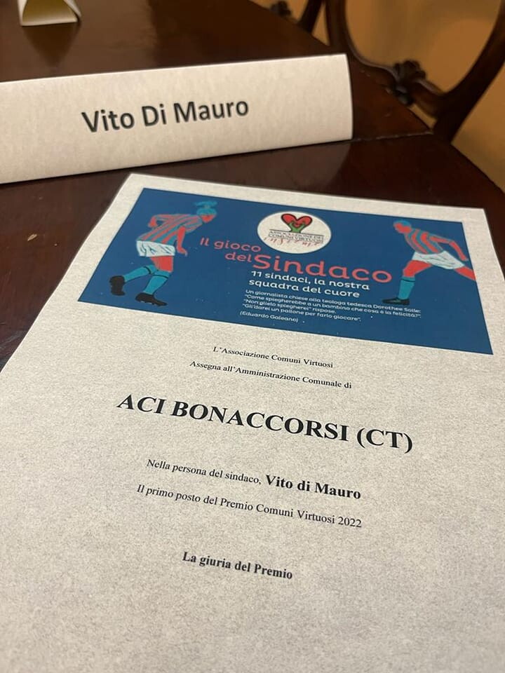 Ha vinto. Il Comune di Aci Bonaccorsi, in provincia di Catania, ha conquistato il titolo di Comune più virtuoso d'Italia. Per l'Associazione Comuni Virtuosi d'italia, che ha indetto il concorso per il 2022, l'amministrazione guidata da Vito Di Mauro è al top e meritava il riconoscimento.