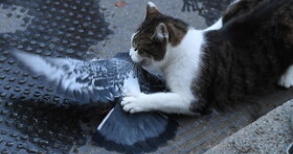 Londra - Una zampata a un malcapitato piccione di passaggio, come a voler celebrare a modo suo l'imminente accordo sul dopo Brexit fra Regno Unito e Ue. Il gattone Larry, che da anni spadroneggia a Downing Street, indifferente al succedersi dei capi di governo di Sua Maestà (da David Cameron, a Theresa May, a Boris Johnson), ha rubato di nuovo la scena stamani di fronte alla residenza del primo ministro britannico, attirando l'attenzione di giornalisti, fotografi e troupe televisive. L'attacco ha indotto ovviamente il volatile a battere in ritirata.