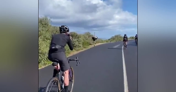 Lo struzzo corre insieme ai ciclisti: la scena è esilarante!