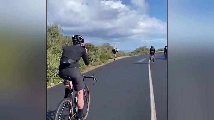 E' accaduto in Sudafrica. Un gruppo di ciclisti, durante una pedalata nel Parco Nazionale di Cape Point, si è ritrovato accanto uno struzzo. Una scena esilarante considerando che il pennuto appare nelle immagini come se fosse impegnato con loro in una gara. Ad un certo punto però lo struzzo ha attraversato la strada ed è tornato nel suo ambiente naturale.