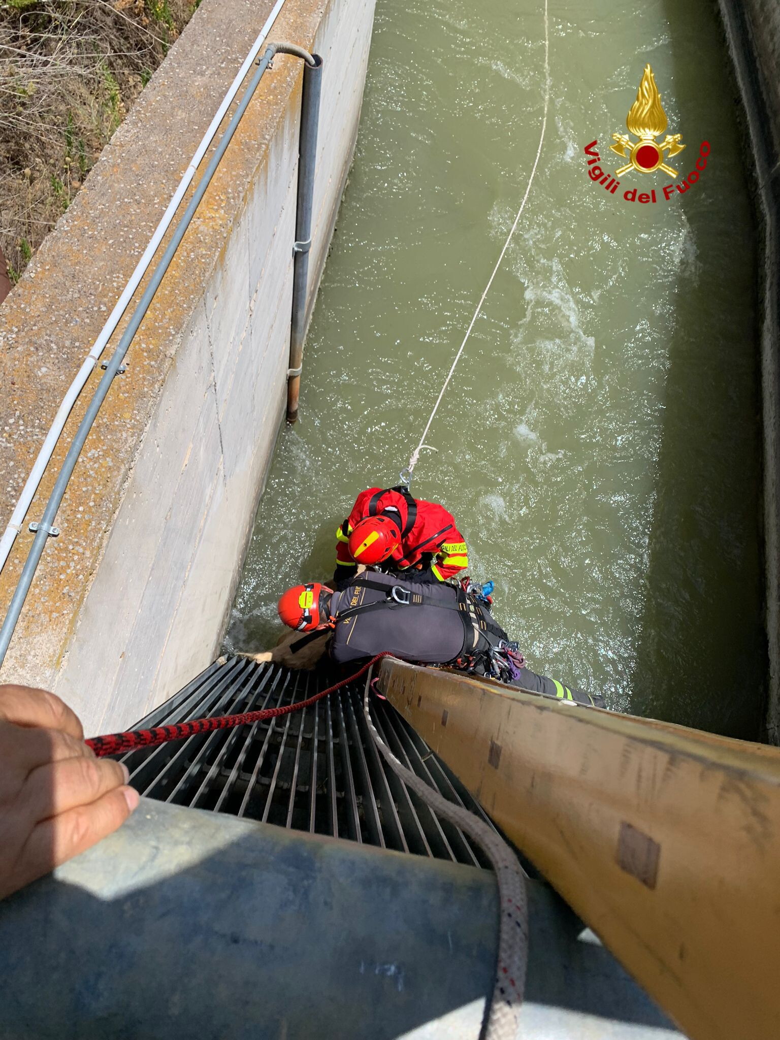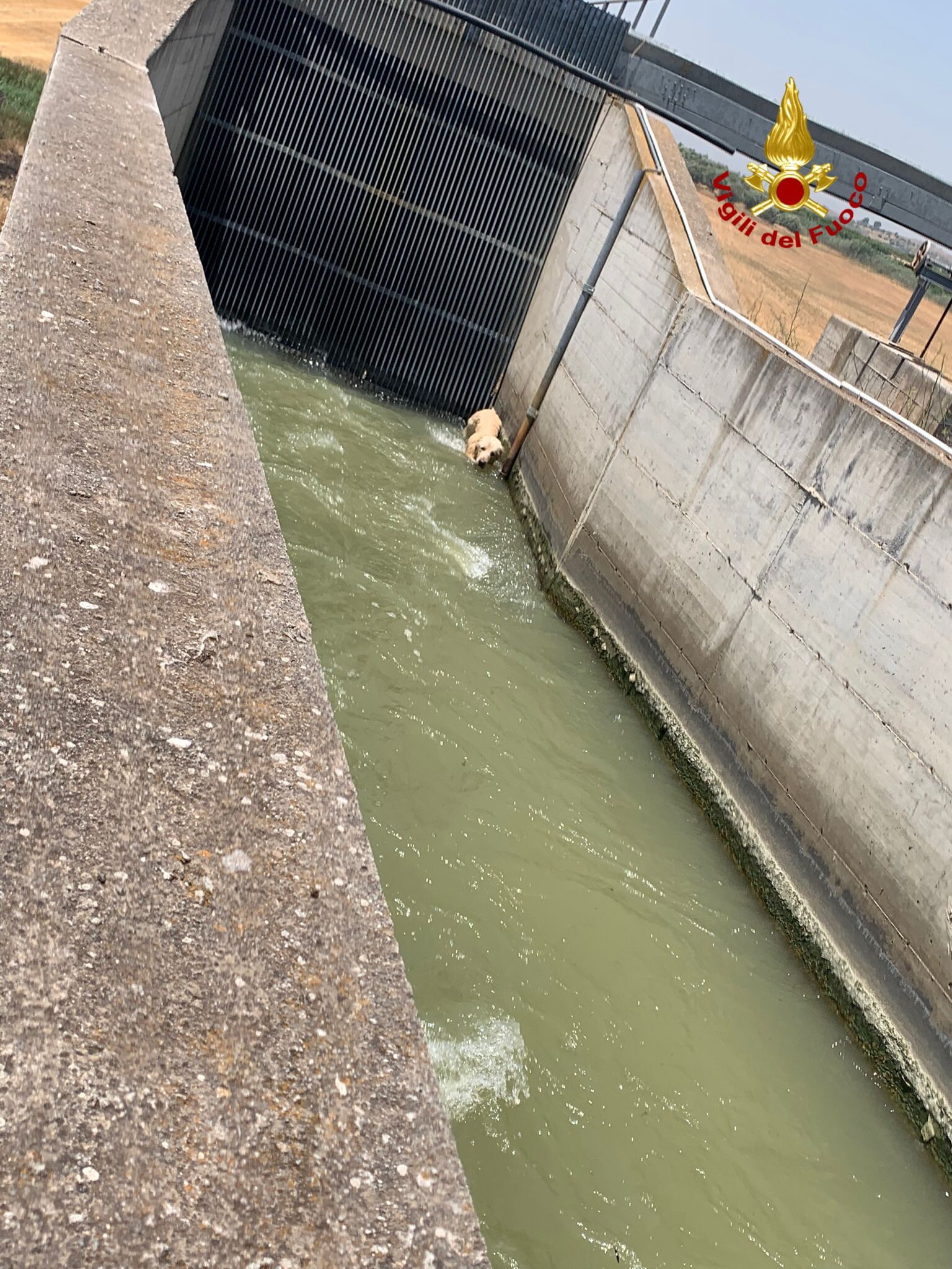 Vigili del Fuoco recuperano un cane caduto in un canalone d'acqua e lo chiamano "Fortunato"