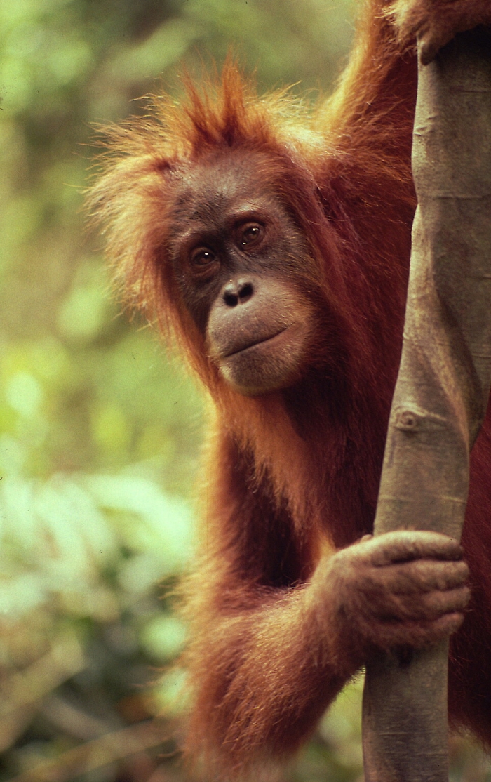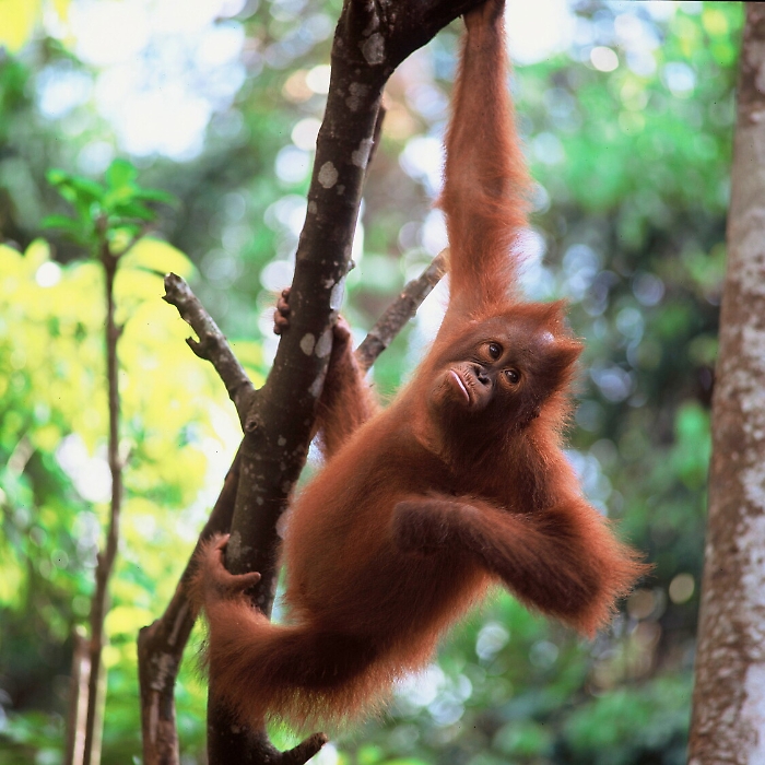 Orango. Conosciuti per la loro caratteristica pelliccia rossa e la loro intelligenza, gli oranghi in natura fanno una vita semi-solitaria. Trascorrono la maggior parte del loro tempo appesi agli alberi, muovendosi rapidamente tra i rami. Gli oranghi solo raramente si riuniscono in grandi alberi da frutto, dove le femmine adulte passano diverso tempo con i loro figli. Gli unici oranghi che condividono la propria quotidianità con altri simili sono proprio le femmine con i loro cuccioli: le cure parentali, infatti, possono durare fino a 6-7 anni.