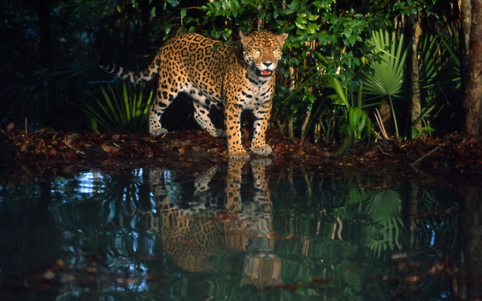 Giaguari. Come per il leopardo delle nevi, anche la vita dei giaguari è pressoché solitaria, ma solo fino alla stagione degli amori: in questo periodo i giaguari possono accoppiarsi fino a 100 volte al giorno. Questi animali preferiscono cacciare da soli utilizzando spesso la tecnica dell'agguato, arrampicati sopra un albero. A differenza della maggior parte degli altri grandi felidi, i giaguari amano l'acqua e si divertono a fare bagni solitari e a volte anche a cacciare pesci nei fiumi.