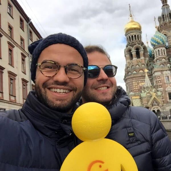 Andrea e Michele sono stati compagni di avventura, nel 2017, per il documentario dal titolo "Il nostro sguardo", interamente girato e montato da un non vedente tra Monaco di Baviera e San Pietroburgo. I protagonisti proprio “L’ambasciatore del sorriso” in giro nel mondo per gli orfanotrofi e il giovane Michele Romeo, che non si è lasciato mai sconfiggere. Appassionato di musica, si è laureato nel 2015 a Milano studiando “Interpretariato e comunicazione”. Ed è nell’ambito degli studi che ha conosciuto Andrea Caschetto, un amico che l’ha aiutato nei momenti di difficoltà e che, oggi, ha incontrato di nuovo per questo sorprendente viaggio. Caschetto è originario del Ragusano, Romeo è invece originario di Mazara del Vallo.