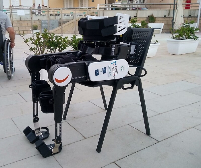«L’esoscheletro Free Walk – ha spiegato Mattia Corsi – è uno strumento adatto per soggetti con lesione midollare grave, completa o incompleta, che può essere utilizzato a seguito di lesioni da C7 in poi (cioè dalla settima vertebra e che mantengono l’uso delle braccia).  Questo modello, molto leggero (appena 20 chili), è utilizzabile in soggetti da 1,50 a 1,90 metri di altezza, con  un peso al di sotto dei 100 chili. È molto flessibile, facile da manovrare e, per pazienti attivi, può consentire una camminata fino a 4 chilometri orari. Dopo un percorso di riabilitazione personalizzato, sarà possibile, per il paziente, l’utilizzo dell’esoscheletro con maggiore autonomia».