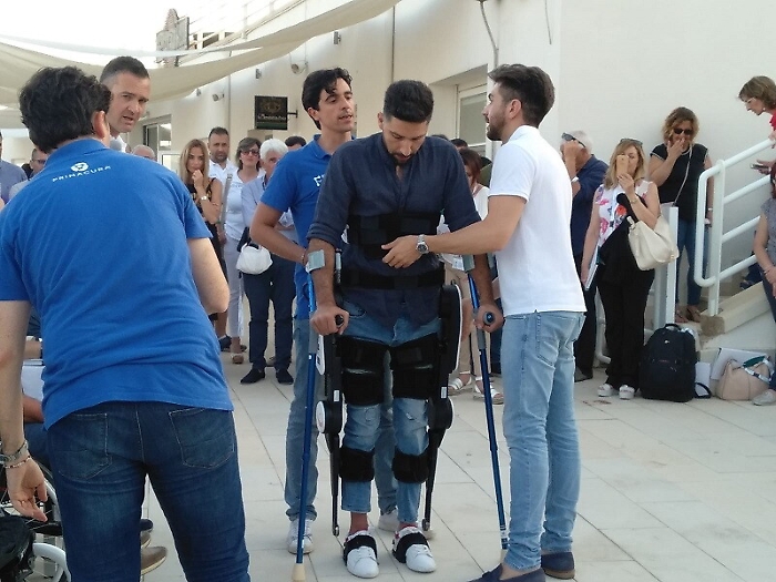 Ieri, per la prima volta, ha provato l’emozione di tornare alto 1 metro e 80. Andrea si è rimesso in piedi grazie a “Free Walk”, un esoscheletro di tecnologia giapponese, realizzato da Free Bionics, appena approdato in Europa. La presentazione, in esclusiva regionale, è stata organizzata da Unipit, in collaborazione con Officine Ortopediche Rizzoli e dalla startup ORTHOM Group, composta da un team di giovani professionisti provenienti da tutta Italia e anche dall’estero. L’iniziativa è stata patrocinata dal Comune di Ragusa, dall’ASP, dall’Ordine dei Medici, dall’INAIL e da Assortopedia. Si tratta del primo evento regionale di presentazione, il secondo in Italia, dopo quello di Villa Beretta (provincia di Lecco), centro di riabilitazione d’eccellenza diretto dal professor  Franco Molteni. Andrea è passato dalla sedia a rotelle all’esoscheletro 2.0, vivendo l’emozione dei primi passi con lo sguardo rivolto verso uno splendido tramonto sul mare, aiutato e sostenuto da Pietro Di Falco, presidente di Unipit e ORTHOM Group, da Alessandro Nobili e Mattia Corsi, di Officine Ortopediche Rizzoli. Era presente anche il direttore generale dell’Asp, Angelo Aliquò.