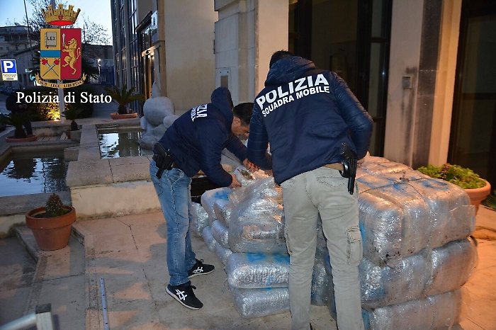 La Polizia di Ragusa ha arrestato due corrieri che trasportavano 330 chili di marijuana e che, sul mercato, avrebbe fruttato oltre tre milioni di euro. In manette sono finiti due pregiudicati del Ragusa, Massimo Battaglia, comisano di 39 anni e Carmelo Incardona, di Scicli di 53 anni. La droga era nascosta in una intercapedine ricavata nel vano di carico piena di marijuana. Il camion è stato fermato da una Volante che successivamente ha chiesto l’ausilio dei colleghi della Squadra Mobile.