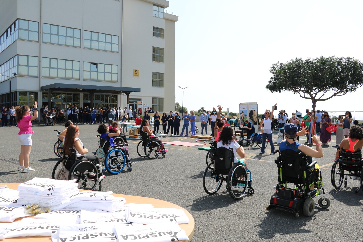 Il decennale, intitolato “Liberi di essere…”, è poi proseguito nello spazio esterno all’Unità Spinale con dimostrazioni di varie discipline sportive e non solo: danza, tiro con l’arco, tennis-tavolo, basket, bocce, calcio balilla, atletica, scacchi, e con spazi dedicati ai trattamenti riabilitativi di terapia occupazionale nonché alle attività di AUspiCa (Associazione Unità Spinale Cannizzaro), che opera all’interno della struttura accompagnando il percorso dei pazienti e dei loro familiari e, nell’occasione, ha omaggiato i presenti con magliette personalizzate. Una è stata consegnata a Laura Salafia, prima paziente a essere trasferita nell’USU di Catania proveniente da altra Unità Spinale del Nord Italia, che ha ringraziato tutti gli operatori per il loro impegno a servizio dei pazienti.
