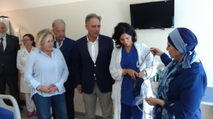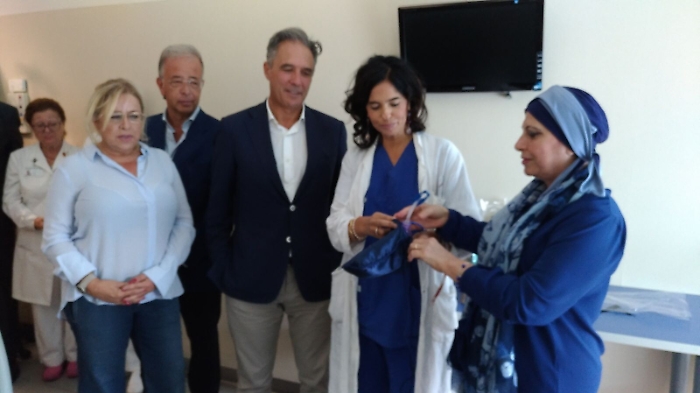 La consegna del dono, la prima ad "indossare" una borsetta di colore blu è stata una paziente del reparto operata la scorsa settimana, è avvenuta alla presenza del direttore della Senologia Francesca Catalano, del direttore generale dell’Azienda Cannizzaro Angelo Pellicanò, del direttore sanitario Salvatore Giuffrida, di Maria Grazia Villari in rappresentanza della Lilt e della presidente dell’associazione VOI Dina Castronovo.