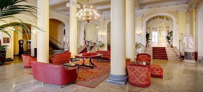 LA STORIA. L’Hotel delle palme ha visto transitare tra le sue stanze politici, generali, artisti, scrittori e personalità che hanno segnato la strada della società europea verso la sua attuale costituzione. Ancora oggi per coglierne l’atmosfera basta fare qualche passo oltre l’atrio dove troneggiano le statue di scuola Canova nella grande hall assieme al pianoforte a coda sul cui sgabello – recita il cartiglio – “Wagner ultimò di comporre il Parsifal nel 1882”. È da qui che Francesco Crispi dava lezioni di politica ed è qui che il drammaturgo e poeta francese Raymond Roussel, uno dei padri della Patafisica, morì nel 1933 (l’episodio è stato poi al centro del film di Meme’ Perlini, dal titolo omonimo: Grand Hotel Et Des Palmes). Ma l’importanza di questo luogo è fortemente legata pure alla nostra storia contemporanea, oltreché a quella moderna: durante la seconda guerra mondiale la struttura divenne quartier generale statunitense a opera del generale Charles Poletti e nel ’57 tra le pareti dell’hotel si tenne l’ultimo incontro tra i capi di Cosa Nostra siciliana e la mafia americana, con a capo Lucky Luciano. In tempi più recenti, poi, come dimenticare la suite numero 103, riservata per anni al Divo Andreotti? Il Presidente vi ha trascorso numerosissime notti, probabilmente convivendo con i suoi più cupi ricordi siciliani. E ancora, di storie se ne potrebbero narrare molte, come la cena da 12 portate organizzata in hotel da Vittorio Emanuele Orlando e il “privato esilio” dell’enigmatico e facoltoso Giuseppe Di Stefano, il Barone Sciacca che qui visse per oltre quarant’anni, si dice per sfuggire a un misterioso ricatto conseguente a un presunto omicidio avvenuto a Castelvetrano.