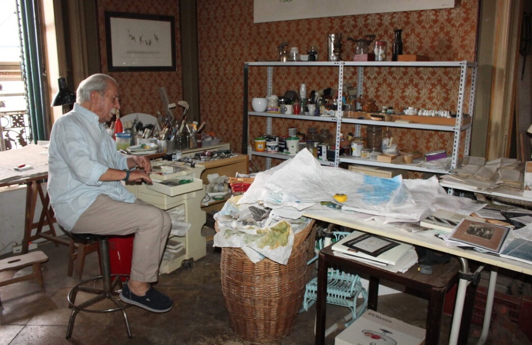 Il palazzo in cui risiede nel cuore della città, è uno dei più belli del territorio, simbolo di una nobiltà di lignaggio e d’animo. Paolo Nicolosi, classe 1945, ci accoglie nella sua splendida dimora che da secoli ospita la famiglia dei Nicolosi e la loro storia che a quella di Acireale è strettamente legata. Un’aria d’altri tempi si respira in quelle stanze dove passato e presente si accostano e dove l’artista acese ha anche il suo atelier, in cui troviamo tanti bei quadri dipinti dallo stesso che adornano le pareti, documenti antichi di famiglia, trofei sportivi e foto che ritraggono, tra l’altro, il padre Carmelo ancora liceale insieme a due suoi compagni di scuola.