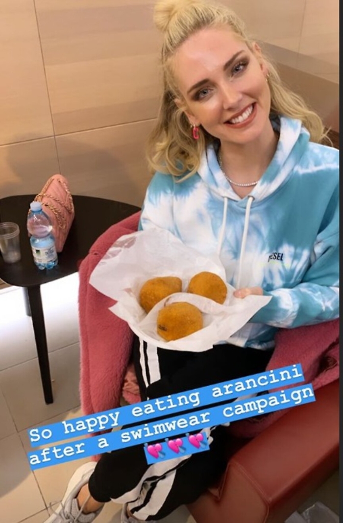 Siracusa - E' tornata a Siracusa dopo le nozze festeggiate lo scorso anno a Noto. Uno shooting fotografico per un noto marchio di intimo e costumi da bagno, ha riportato Chiara Ferragni tra le chiare, fresche e dolci acque della città di Archimede. La blogger e influencer ormai di fama internazionale ha immancabilmente postato foto social delle sue giornate siracusane baciate da un sole che hanno fatto da scenografia naturale alla campagna pubblicitaria che la vede protagonista (Fedez è rimasto a casa a Milano con il piccolo Leone). Non solo bagni di sole per la bella Chiara, che sfoggia un fisico perfetto, ma anche un tuffo nella gastronomia siciliana già apprezzata dai Ferragnez in occasione di precedenti vacanze in Sicilia. E quindi come non lasciarsi tentare dai magnifici arancini! Chiara non ha affatto disegnato accompagnando la foto con il post: "So happy eating arancini, after a swimwear campaign" (Cosi felice di mangiare arancini dopo una campagna sui costumi da bagno). E chissà che al più la "Blonde Salade" non possa tornare in Sicilia con il resto della famiglia.