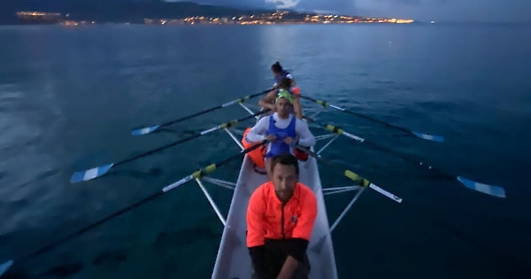 Ieri sera a Messina, Origoni è stato ospitato è stata ospitato dall’atleta del Cc Peloro, la messinese Flavia Calabrò e questa mattina, ritrovo alle 5,30 e partenza alle 5,45, Elia si è messo ai remi per la traversata. Ad accompagnarlo un equipaggio di eccezione: lo stesso presidente Femminò, esperto di questo tipo di imprese dal momento che nel coastal rowing ha già effettuato la traversata da Genova a Roma e il giro delle Isole Eolie; Paolo Condurso, esperto di mare e pescatore professionista; Giovanni Ficarra, due volte iridato Under 23 tra i Pesi Leggeri nel 2015 e nel 2017 e oggi tecnico del Cc Peloro e al timone Maria Condurso, altra esperta di mare essendo, oltre che atleta del Cc Peloro, allieva di coperta.