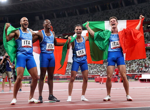 azzurri della 4x100 sono oro olimpico, dopo quello di Jacobs nei 100. Non uno, ma tutti. L’Italia è il paese più veloce del mondo. E quella dei quattro campioni vestiti del tricolore è definitivamente l’immagine delle Olimpiadi di Tokyo, ai loro saluti (7 agosto, sedicesimo giorno).