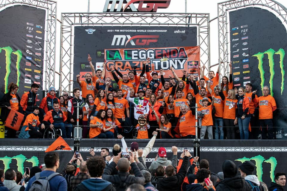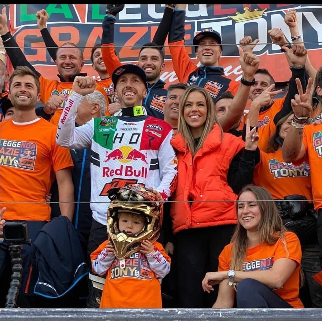 CASCO D'ORO. «Ve lo devo proprio dire - confessa Tony che a Mantova Mantova ha ricevuto il casco d’oro alla carriera - non è stata una decisione facile da prendere, ma è arrivato il momento per chiudere un capitolo della mia vita e aprirne un altro, non può essere sempre “Velocità, Fango e Gloria” e non mi sono mai fermato a pensare come sarebbe stato questo momento. Ora avrò più tempo per mio figlio Chase Ben, per mia moglie Jill e per me e il mio pensiero va anche a mia madre, a mio padre, alla mia famiglia; a quegli anni in Sicilia quando le prime gare erano solo sogno e sacrificio, per tutti. Ogni volta che ho vinto un titolo, il mio pensiero andava a loro; ne sono arrivati nove di titoli, qualcosa che non avrei mai potuto immaginare quando, attorno a casa, bruciavo litri di miscela girando in tondo».